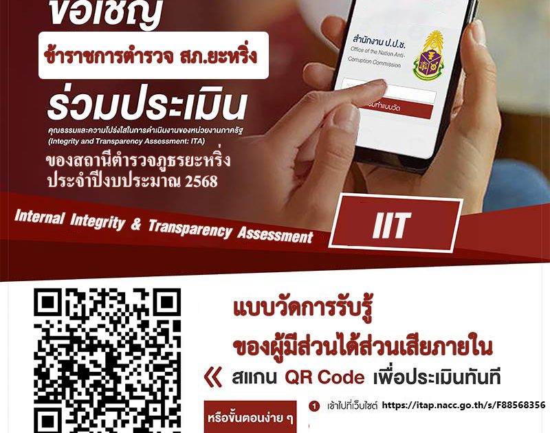 ขอเชิญชวน ข้าราชการตำรวจ สภ.ยะหริ่ง ร่วมตอบแบบวัดการรับรู้ของผู้มีส่วนได้ส่วนเสียภายใน