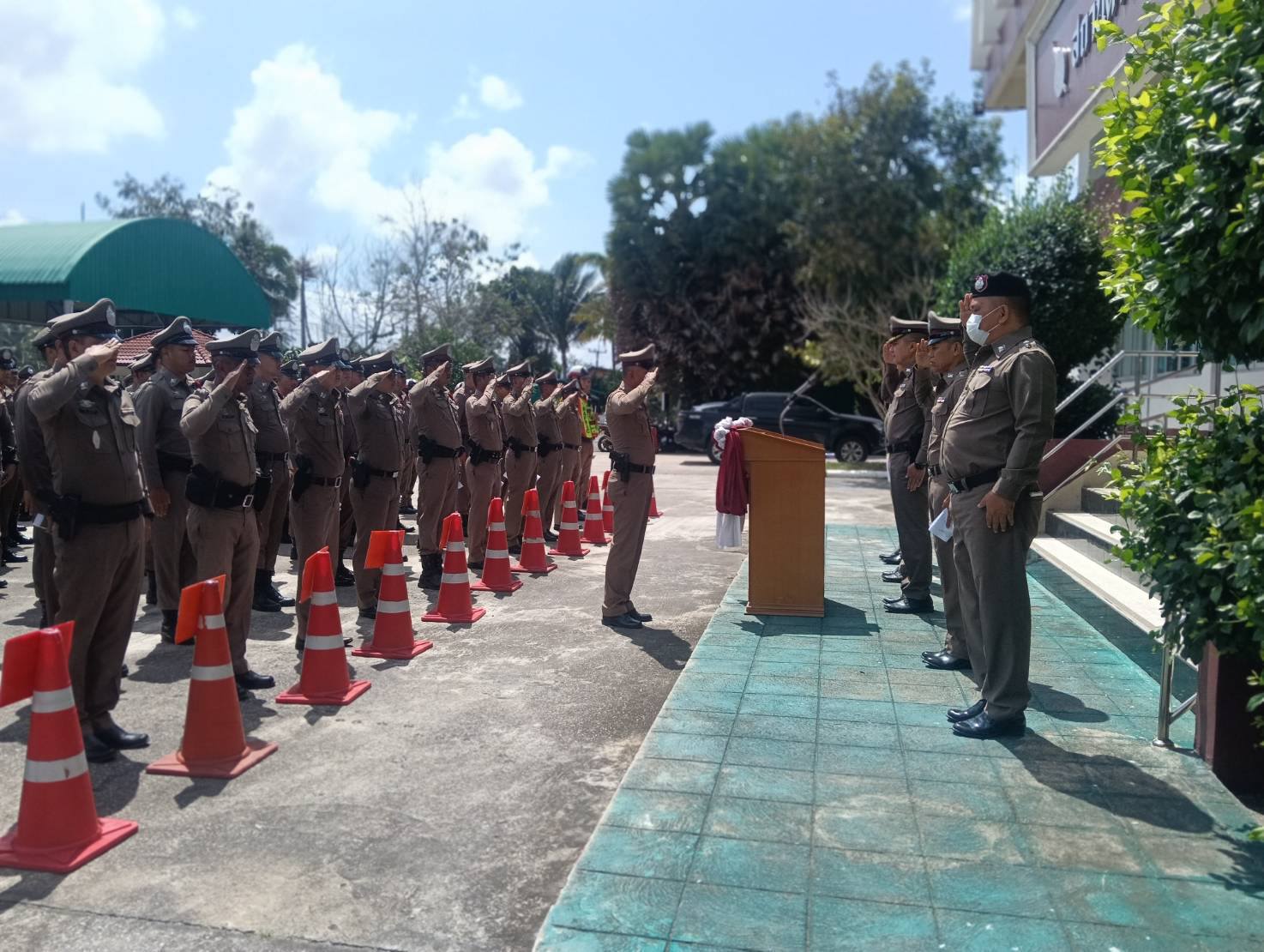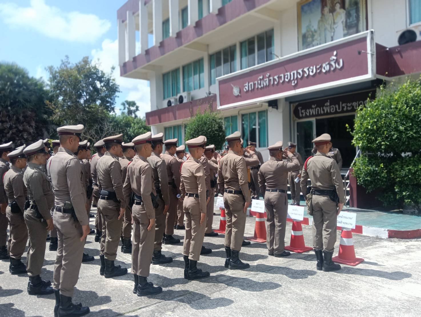 ปล่อยแถวตรวจเช็คความพร้อม เครื่องแต่งกาย ทรงผม หนวดเครา อุปกรณ์ต่างๆที่จำเป็นในการปฏิบัติหน้าที่