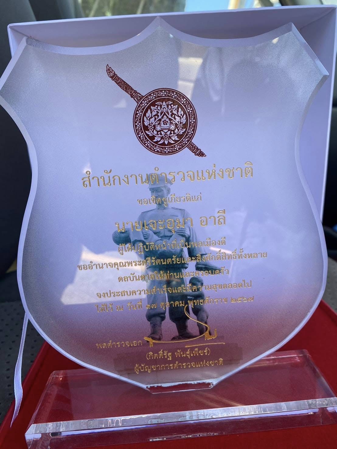 ได้มอบโล่ประกาศเกียรติคุณ เนื่องในวันตำรวจ 25 ตุลาคม 2567 โดย admin / ข่าวภารกิจผู้บังคับบัญชา วันนี้ 25 ตุลาคม 2567เวลา 09.00 น.พ.ต.อ.ธีรพจน์ ยินดีผกก.สภ.ยะหริ่ง ได้มอบโล่ประกาศเกียรติคุณ เนื่องในวันตำรวจ ให้แก่นายเจะอุมา อาลี ซึ่งเป็นผู้ที่ทำคุณประโยชน์ให้กับสำนักงานตำรวจแห่งชาติดีที่ช่วยเหลืองานราชการตำรวจ และปฏิบัติหน้าที่พลเมืองดีประจำปี 2567ณ ห้องประชุม สภ.ยะหริ่ง Previous Next FacebookFacebookXXLINELine