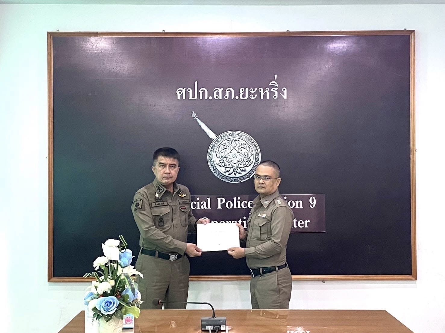 เมื่อวันที่ 20 พ.ย.67 เวลา 09.30 น. พ.ต.อ.ธีรพจน์ ยินดี ผกก.สภ.ยะหริ่ง มอบประกาศเชิดชูเกียรติข้าราชก